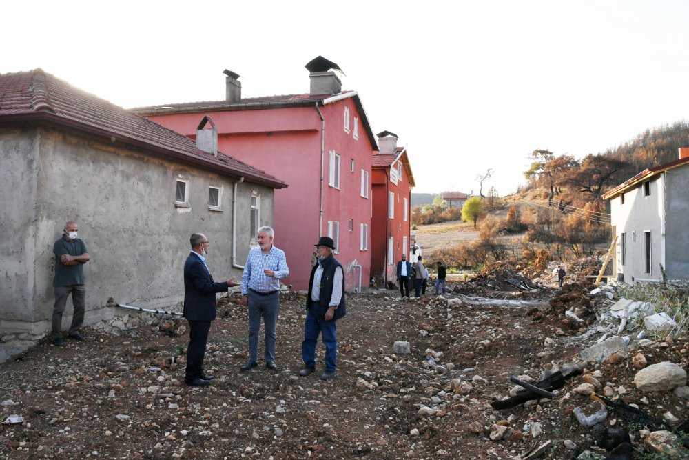Belediyenin yapmış olduğu yeni evleri ve tadilattan geçen yapıları inceleyen Belediye Başkanı Şükrü Başdeğirmen, evi hasar gören ve evleri tamamen yanan vatandaşlarla bir araya geldi.