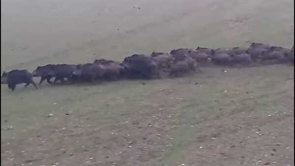 Yaşam alanlarında aç kalan yaban domuz sürüleri yiyecek aramaya Çünür Mahallesine indi. Bir vatandaşın evinin balkonundan telefonla çekilen fotğraflarda sürünün genellikle yavrulardan oluştuğu ve yaklaşık 25 adet olduğu gözlemlendi.Bir süre boş tarlalarda dolaşan domuz sürüsü daha sonra gözden kayboldu.