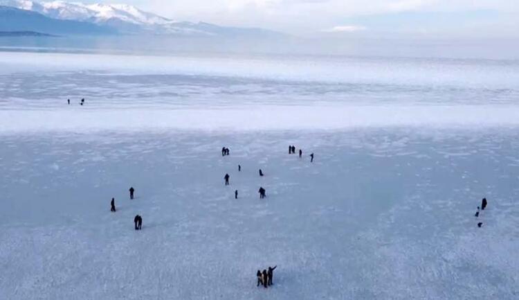 Kimisi bisiklet sürdü, kimisi köpeğini gezdirdi, kimisi de masa ve sandalyesini atarak çay kahve içti. Buz tutmuş göl üzerindeki vatandaşlar, yetkililerin olası tehlikeye karşı yaptığı anons ve uyarılara aldırmadı.