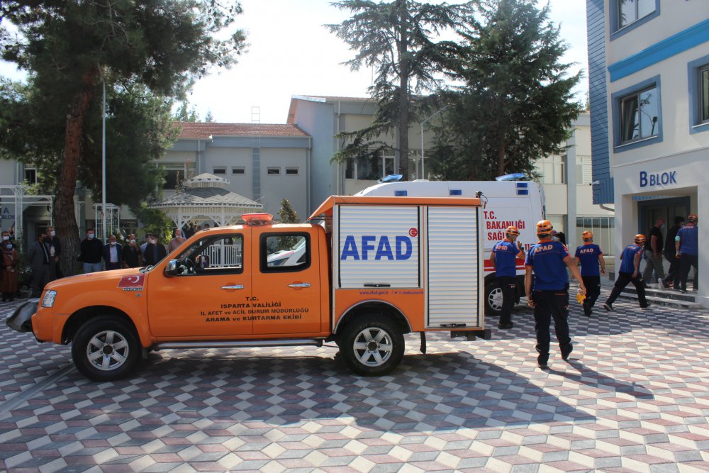 AFAD İl Müdürlüğü tarafından Isparta Uygulamalı Bilimler Üniversitesinin rektörlük yerleşkesinde deprem tatbikatı gerçekleştirildi. Senaryo gereği 6.5 şiddetindeki deprem sonrası binada mahsur kalanlar ve yaralılar kurtarıldı. Tatbikatta üniversite personeline yangın söndürme eğitimi de verildi.
