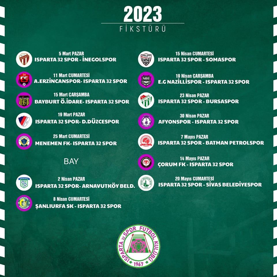 Asrın felaketi sonrası ara verilen futbol müsabakaları yeniden başlıyor. 2. Lig Beyaz Grup'ta mücadele eden Isparta 32 Spor'un da fikstürü belli oldu. Yeşil-pembeliler ilk maçını 5 Mart Pazar Günü İnegölspor ile yapacak. Karşılaşma Isparta'da oynanacak.