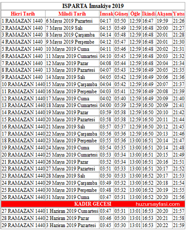 Ramazan ayı 2019 yılı için 6 Mayıs Pazartesi günü başlıyor. İlk sahura 5 Mayıs gecesi kalkılacak. İlk iftar 6 Mayıs’ta açılacak.