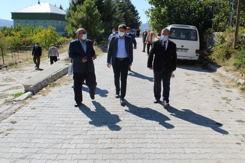 İlçe Jandarma Komutanı Muttalip İbiş, İl Genel Meclis Üyesi Mehmet Dursun, İlçe Yazı İşleri Müdürü Himmet Baş, SYDV Müdürü Hatice Akış, İlçe Tarım ve Orman Müdürü Hüseyin Çevik ile birlikte Dere Köyüne çalışma ziyaretinde bulunan Kaymakam Erdoğan, vatandaşın huzur ve mutluluğu için çalıştıklarını söyledi.