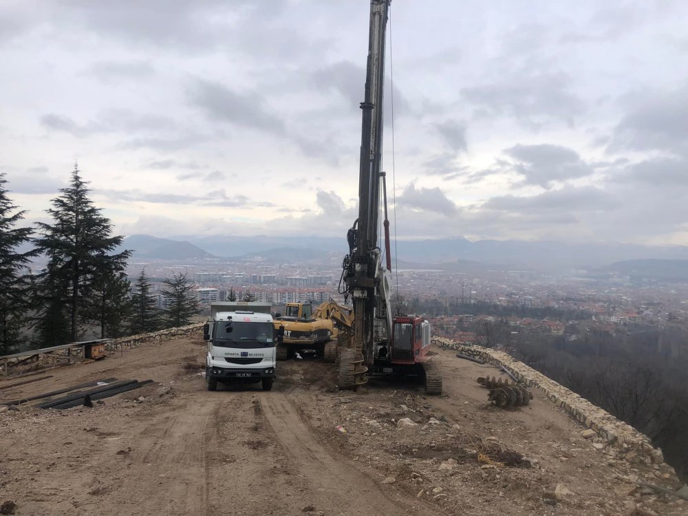 Kirazlıdere'de uçurumdan şehre doğru 50 metre uzunluğunda yapılacak olan cam seyir terasının fore kazık çalışmalarına başlanıldı.