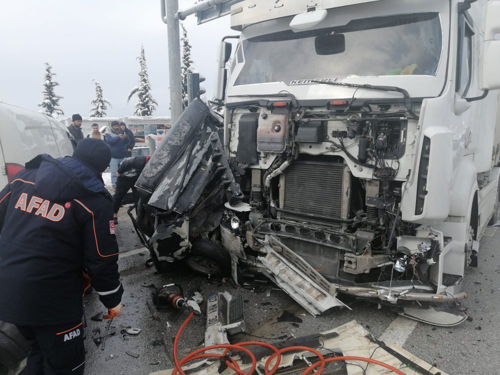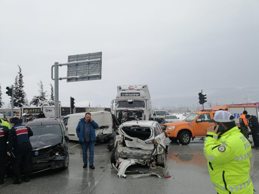 OSB önünde kontrolden çıkan tır, 7 araca çarptı.