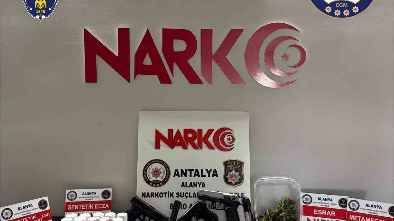 Antalya'nın Alanya ilçesinde 50 ekiple 45 adrese yönelik gerçekleştirilen eşzamanlı uyuşturucu operasyonunda çok miktarda uyuşturucu ve tabanca ele geçirildi, 37 kişi gözaltına alındı.