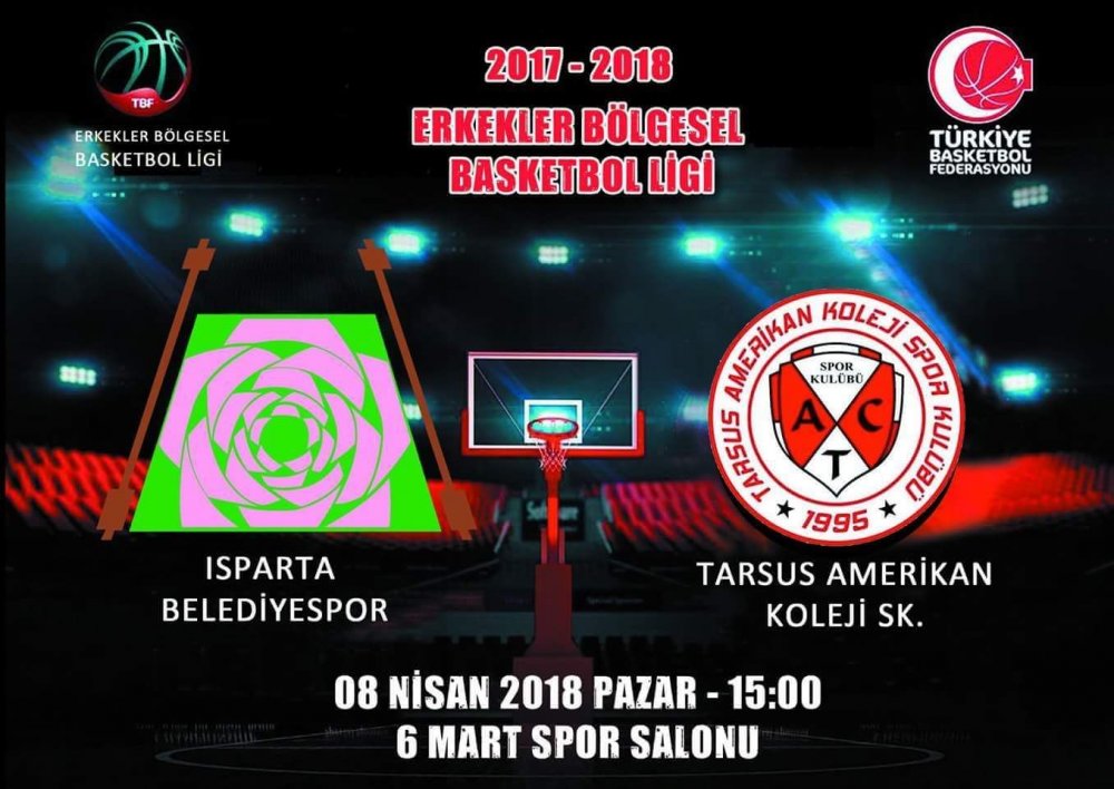 Türkiye Basketbol Federasyonu tarafından düzenlenen 2017-2018 Erkekler Bölgesel Basketbol Ligi Maçlarında heyecan başlıyor. Isparta Belediyesi Basketbol Takımı, 8 Nisan Pazar günü ilk karşılaşmasına çıkıyor. Dev adamların rakibi Tarsus Amerikan Koleji Spor Kulübü. 6 Mart Spor Salonu’nda saat 15.00’de oynanacak karşılaşma için hazırlıklarını sürdüren dev adamlar, Isparta’yı en iyi şekilde temsil etmeyi hedefliyor.