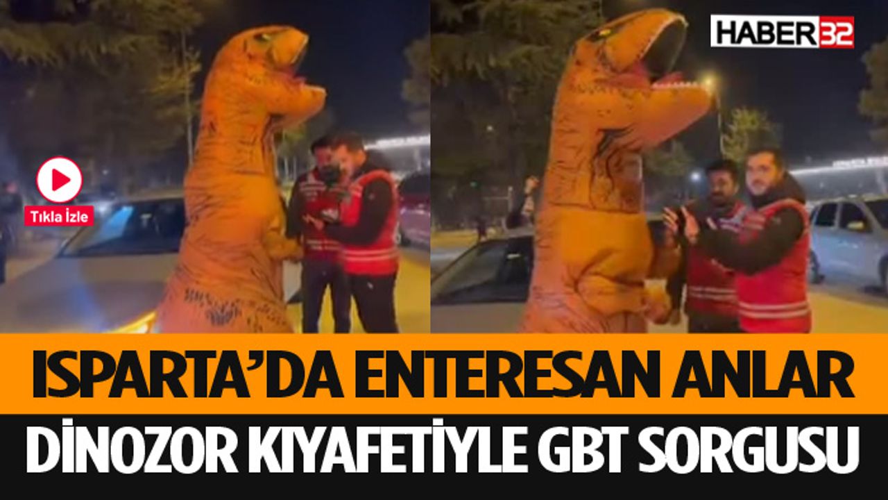 Eğlenceli anlar polis ekiplerinin GBT kontrolü sırasında daha da ilginç hale geldi. Dinozor kostümlü vatandaşı durduran ekipler, uygulama sırasında gülme krizine girdi.