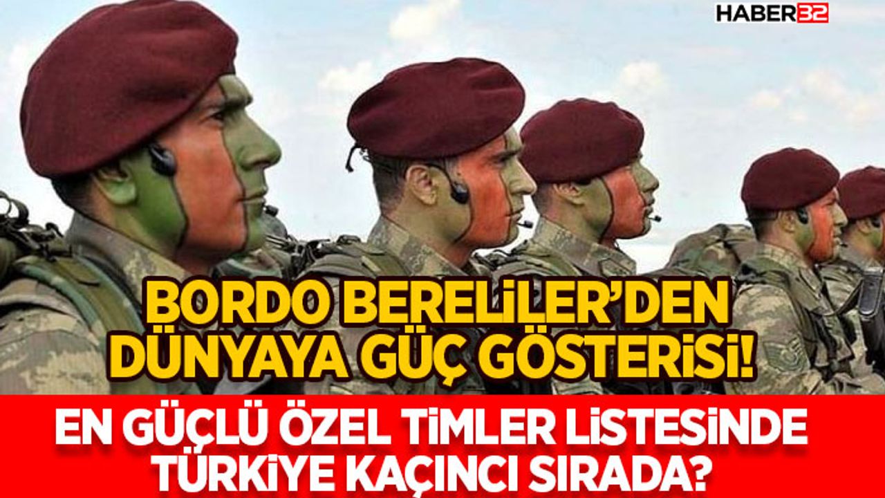 Dünyanın en güçlü özel timleri listesinde üst sıralarda yer alan Bordo Bereliler Türkiye'nin askeri gücünü bir kez daha gözler önüne seriyor. Disiplinli eğitimleri, zorlu görevlerdeki başarıları bu özel timi sadece Türkiye’de değil dünyada da ünlü bir ekip haline getiriyor.
