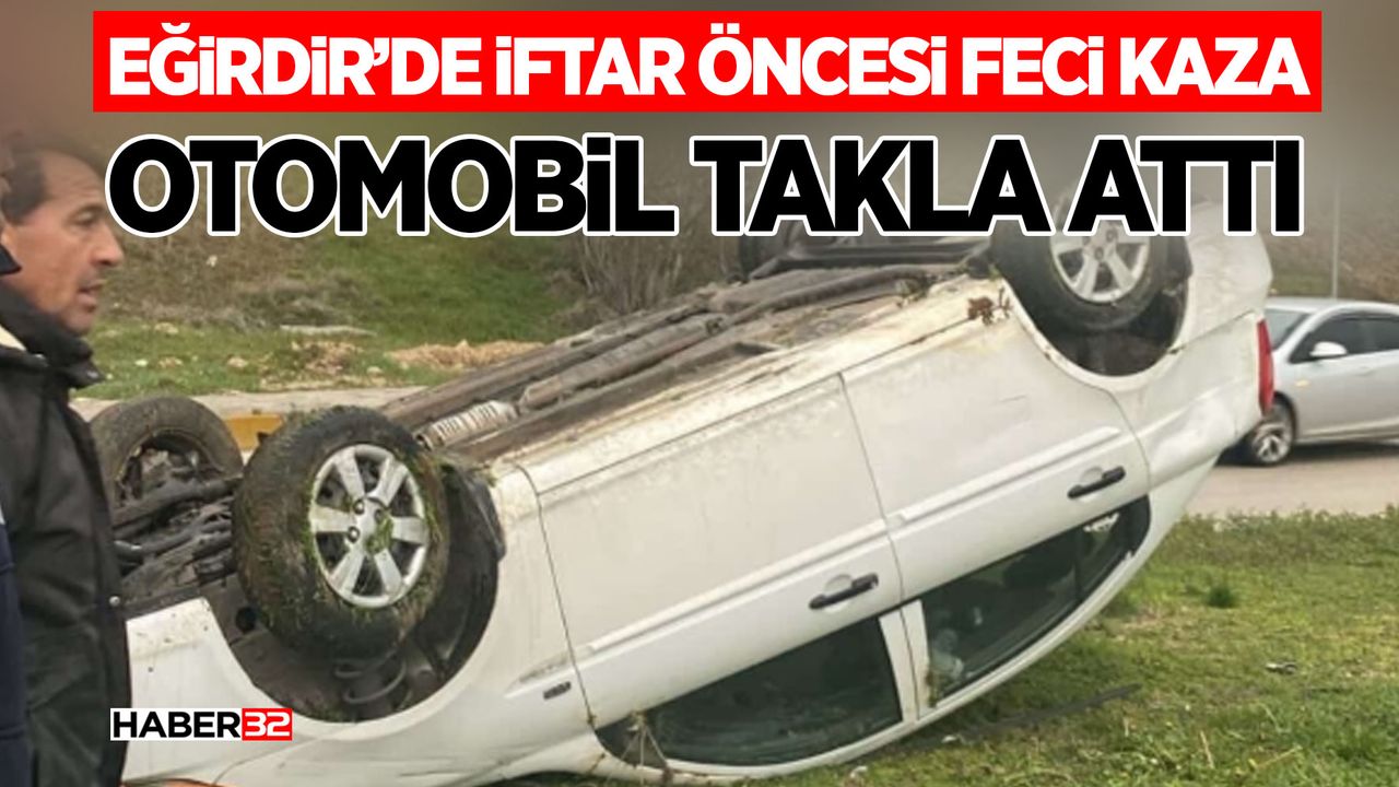 Eğirdir ilçe merkezinde, Devlet Hastanesi önünde gerçekleşen kazada yürekler ağza geldi. Edinilen bilgilere göre, iftar vaktine kısa bir süre kala seyir halindeki bir otomobil, sürücüsünün direksiyon hakimiyetini kaybetmesi sonucu kontrolden çıktı. Savrulan araç, orta refüje çarptıktan sonra yan yatarak durabildi.