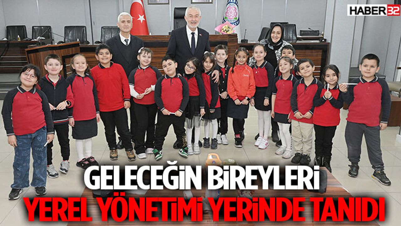Şehit Hasan Hüseyin Gül İlkokulu 2/B sınıfı öğrencileri, Belediye Başkanı Şükrü Başdeğirmen’i ziyaret ederek, yerel yönetimler konusunda merak ettikleri soruları