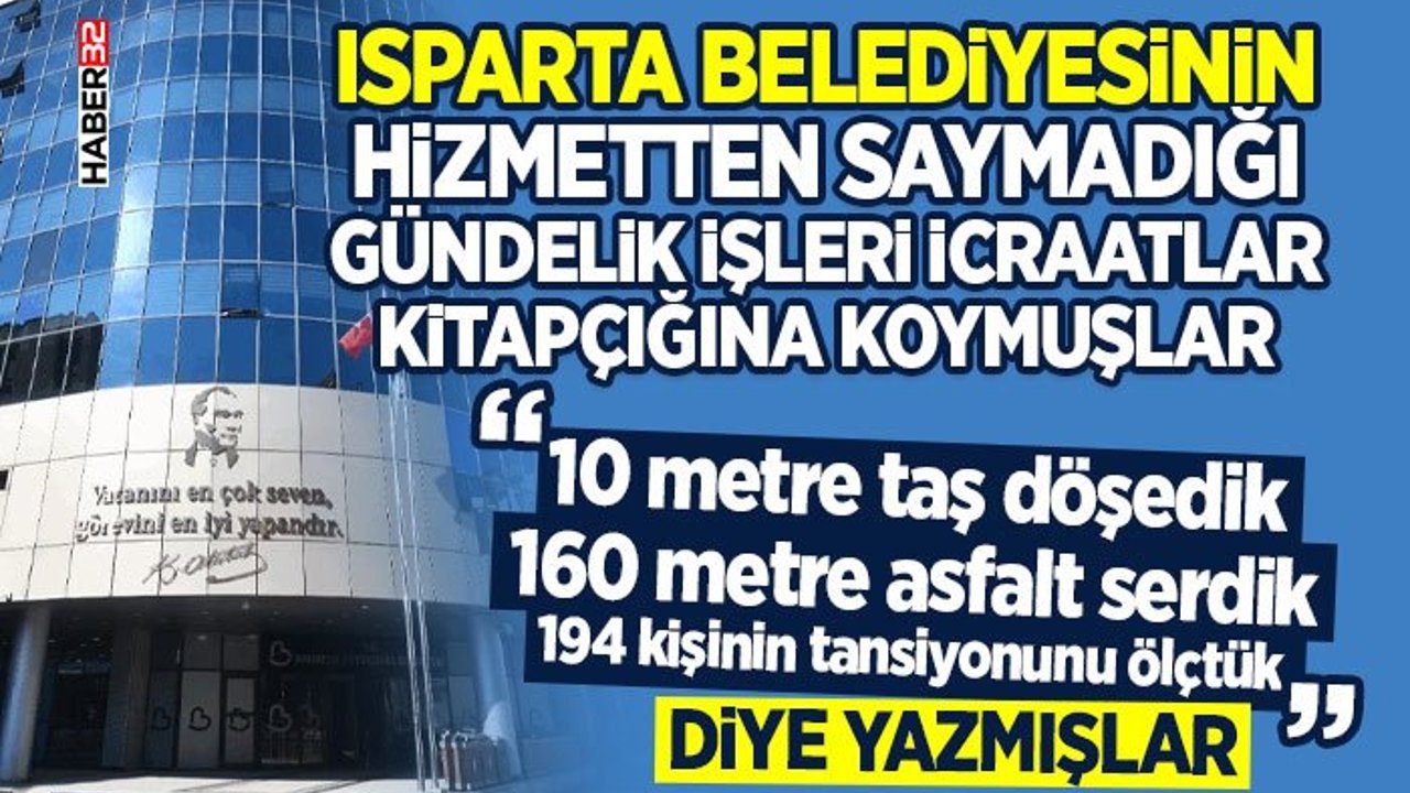 Öte yandan büyükşehir olmayan Isparta Belediyesi’nin benzer nitelikteki rutin çalışmalara ve daha fazlasına faaliyet raporlarında yer vermiyor., Bir yanda Büyükşehir belediyesinin bu trajikomik icraat listesi yer alırken, Isparta Belediyesi hayata geçirdiği birçok küçük ve orta çaplı çalışmaları anlatmaya gerek bile görmüyor.