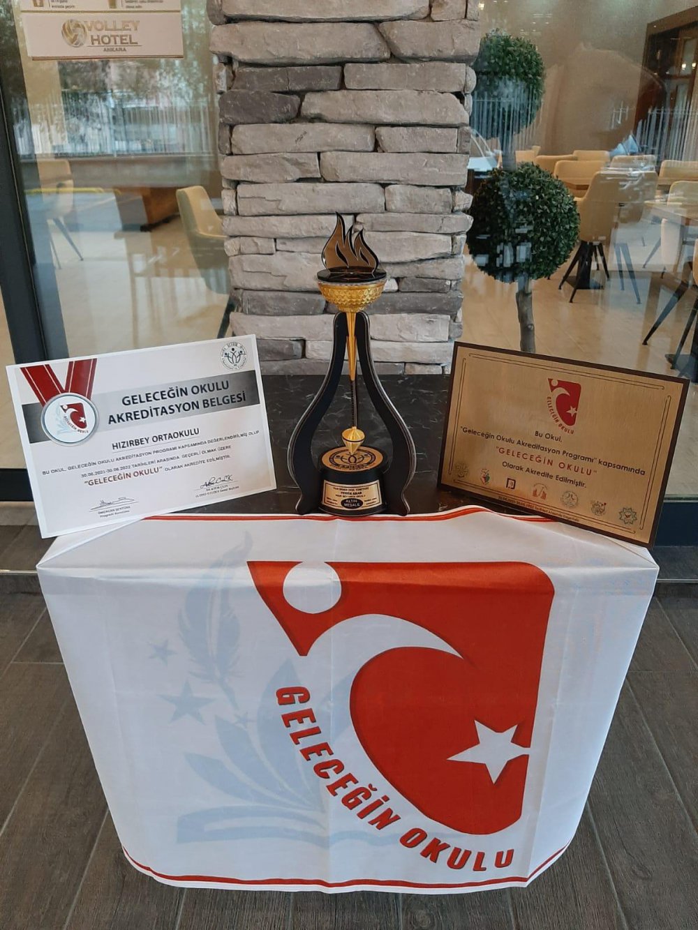 Okulumuz beş yıllık yeni bir okul olmasına rağmen il genelinde engellilerin fiziki ortamda rahat hareket edebilmelerine uygunluk olan “Erişebilirlilik Belgesi”ni, okulun temiz ve hijyen olması ile ilgili “Okulum Temiz Belgesi”ni ve yukarıda açıkladığım çalışma sonucunda “Geleceğin Okulu Belgesini” ilimiz genelinde İLK ALAN OKUL olma başarısını göstererek İLKLERİN OKULU olmayı başarmıştır.