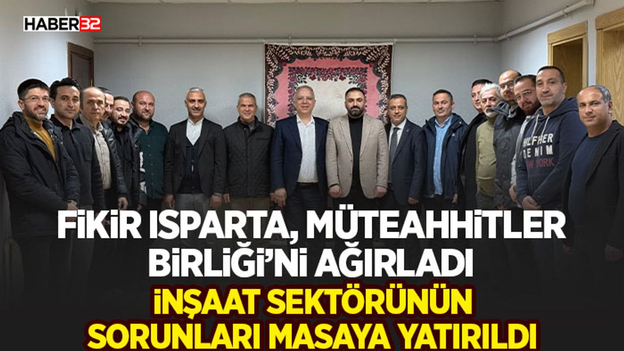 Fikir Isparta Topluluğu’nun “Sektör Buluşmaları” kapsamında yürüttüğü faaliyetler çerçevesinde bu hafta Isparta Müteahhitler Birliği konuk edildi. Toplantıya Müteahhitler Birliği Başkanı Ali Yüce, Fikir Isparta Topluluğu Başkanı Yunus Karabulut, Müteahhitler Birliği ve Fikir Isparta Topluluğu üyeleri katıldı.