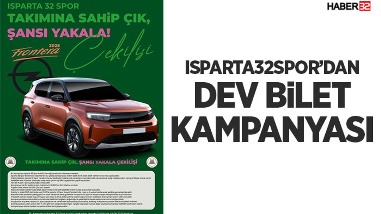 TFF 2. Lig Kırmızı Grup’ta mücadele eden ISBAŞ Isparta 32 Spor, taraftarlarını kulübe destek olmaya ve büyük bir ödül kazanmaya davet ediyor. Kulüp, "Takımına Sahip Çık, Şansı Yakala!" sloganıyla dev bir otomobil çekilişi kampanyası başlattı. Kampanyaya katılan taraftarlar, 2025 model Opel Frontera kazanma şansı yakalayacak!