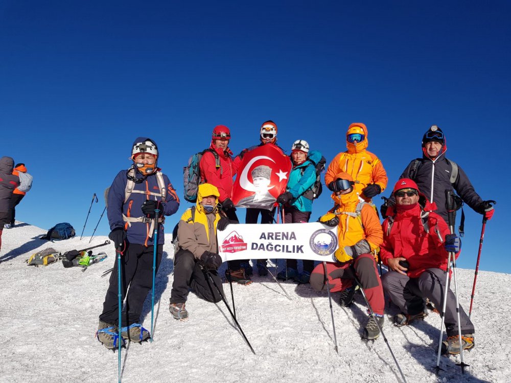Isparta Arena Dağcılık Kulübü'ne bağlı lisanslı profesyonel dağcı grubu, Türkiye’nin çatısı olan 5.137 metre yüksekliğindeki Ağrı Dağı'nın tırmandılar.