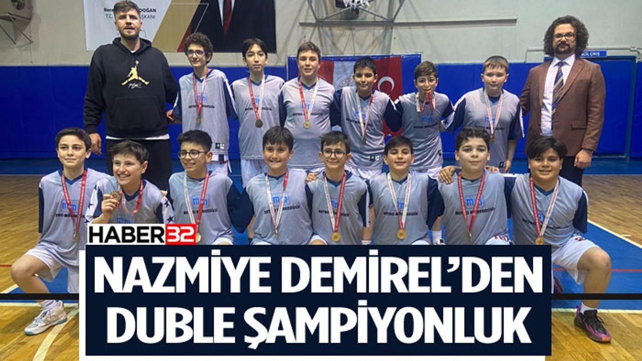 6 Mart Kapalı Spor Salonunda gerçekleştirilen müsabakalarda grubunu lider olarak tamamlayan Nazmiye Demirel Ortaokulu Kız ve Erkek Basketbol Takımları final maçlarında galip gelerek, duble şampiyonluk heyecanı yaşadı.