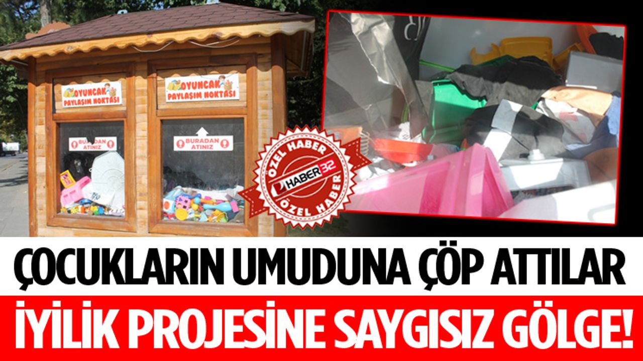 Isparta’da geçtiğimiz yıllarda kurulan oyuncak kumbarası, yardımlaşma ve paylaşmanın önemine katkı sunmaya devam ediyor. Ancak, çocukların yüzünde tebessüm oluşturmayı ve paylaşmanın önemini anlatan projeyi sabote edenler oldu. Haber 32’nin objektiflerine, çöpe atılması gereken ancak oyuncak kumbarasının içine atılmış kıyafet esikleri takıldı. Çevrede ki vatandaşlar bu duruma “Alıştık, güzel bir şey ancak böyle mahvedebilirdi” sözleriyle tepki verdi.