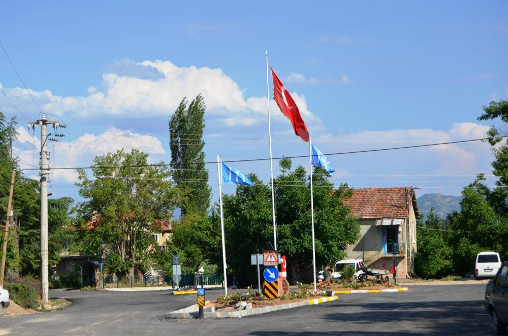 Seçimlerden hemen sonra köy girişindeki meydana refüjlü döner kavşak uygulaması yapan Kayı Köyü Muhtarı Faruk Keleş, meydanı “Türk Bayrağı” ile Osmanlının kuruluşunda çok büyük emekleri olan “Kayı Boyu Bayrağı” ile süsledi.