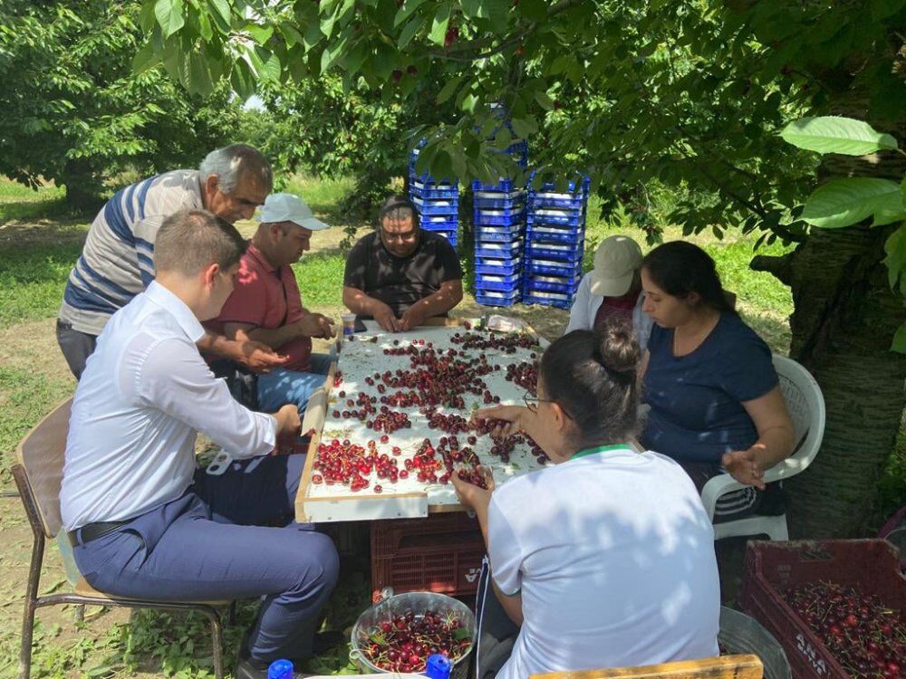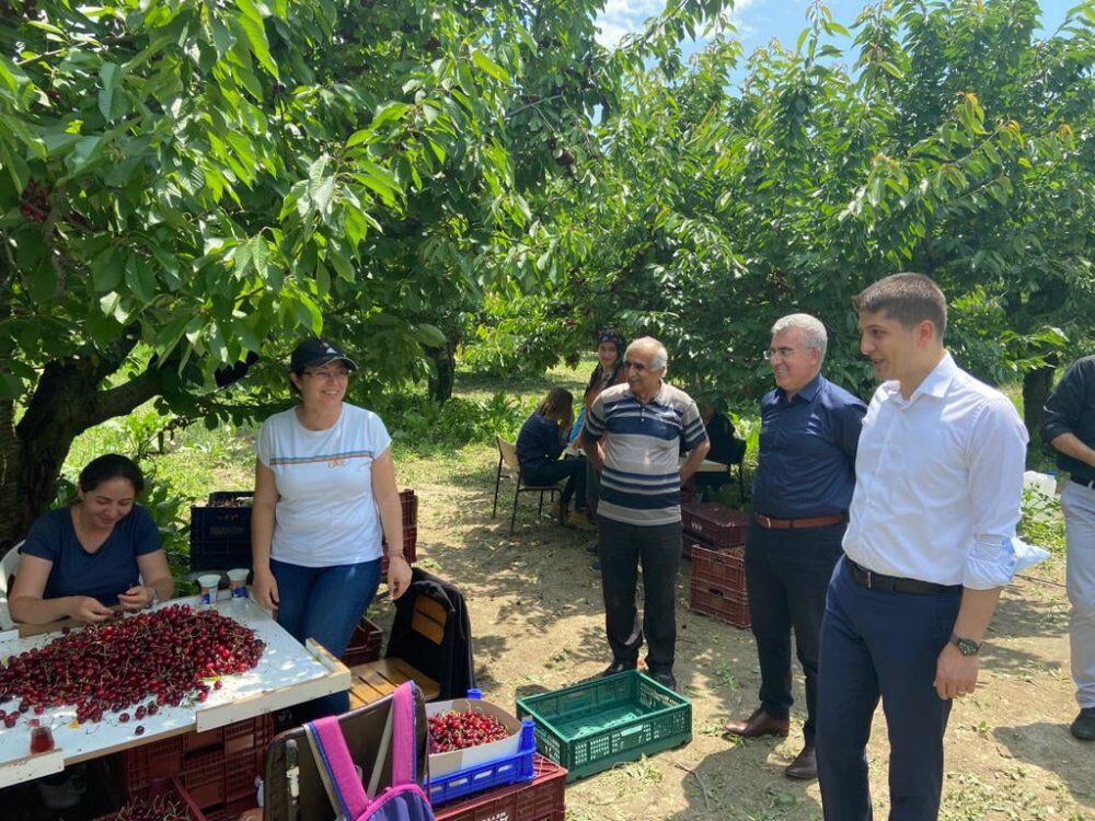 Uluborlu Kaymakamı Zikrullah Erdoğan Köylere Hizmet Götürme Birliğine ait kiraz bahçesinde kiraz hasadına katılarak bereketli bir hasat dönemi diledi.