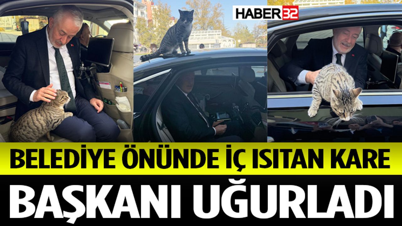 Ankara’ya gitmek üzere yola çıkacak olan Belediye Başkanı Şükrü Başdeğirmen’i Belediye binası önünden uğurlama sırasında içimizi ıstan anlar yaşandı. Başkan Başdeğirmen makam aracındayken bir kedi, Başkanın kucağına geldi. Kedi dakikalar boyunca kendisini sevdirdi. Başkanı uğurlayanlar bu anın fotoğrafını çekti. Hayvan severliğiyle tanınan Başkan Başdeğirmen, kediyi sevdikten sonra Ankara’ya yola çıktı.
