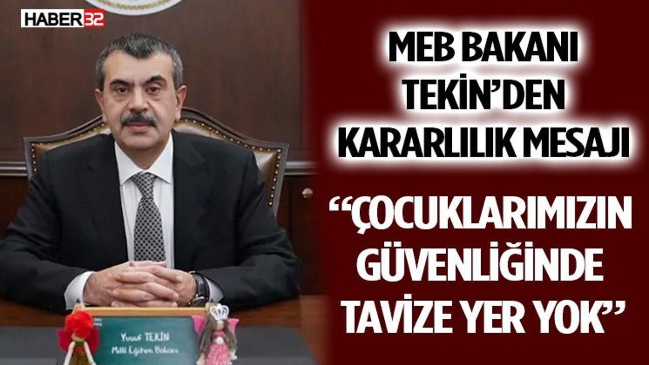 Eğitimin temel amacının umudu yeniden yeşertmek olduğunu ifade eden Tekin, “Evlatlarımızın huzurunu sükunetle inşa etmek, çocuklarımızın gözlerinde parıldayan o ışığı korumak Bakanlık olarak sorumluluğumuzdur. Evlatlarımızın güvenliği konusunda en küçük bir tavize izin vermeyeceğiz” dedi.