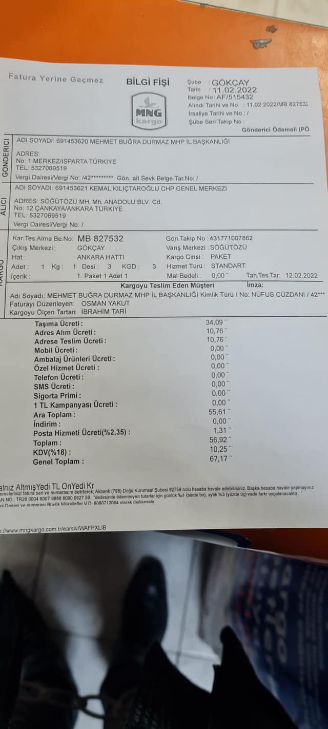 Liderim ve Genel Başkanım Devlet Bahçeli Beyin talimatı ile Chp Genel Başkanı Kılıçdaroğlu’na Kandilini Kargoladık.