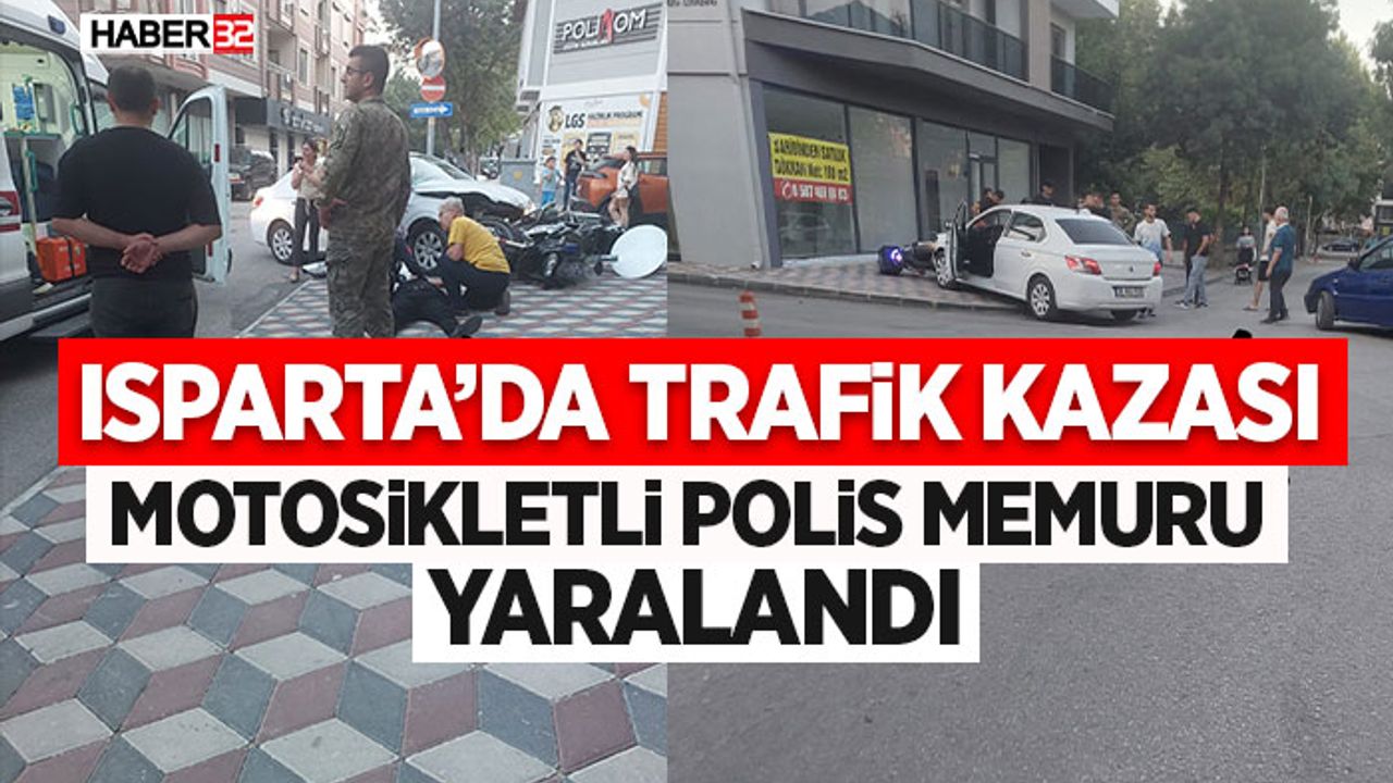 ISPARTA - Isparta'da bugün öğle saatlerinde Gazi Kemal Mahallesi, İmam Hasan Sokak'ta meydana gelen trafik kazasında, bir otomobilin çarptığı motosikletli polis memuru yaralandı.