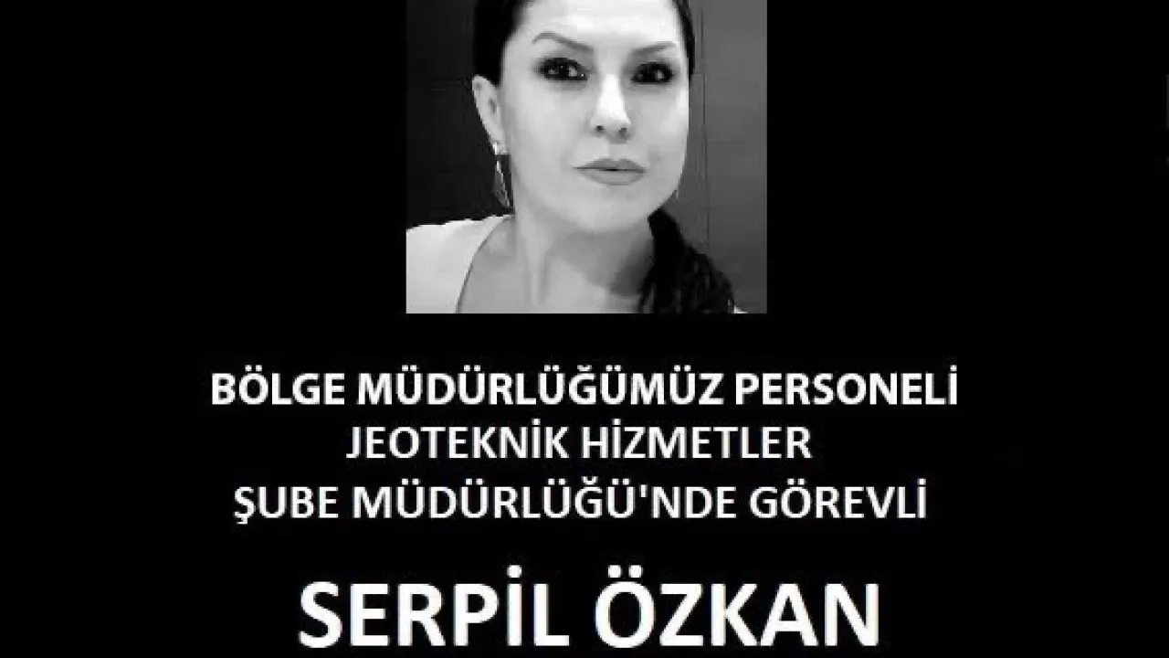 “Acı kaybımız. Bölge Müdürlüğümüz personeli Jeoteknik Hizmetler Şube Müdürlüğü’nde görevli Serpil Özkan hakkın rahmetine kavuşmuştur. Merhumeye Allah’tan rahmet, kederli ailesine ve tüm DSİ camiasına başsağlığı dileriz.”
