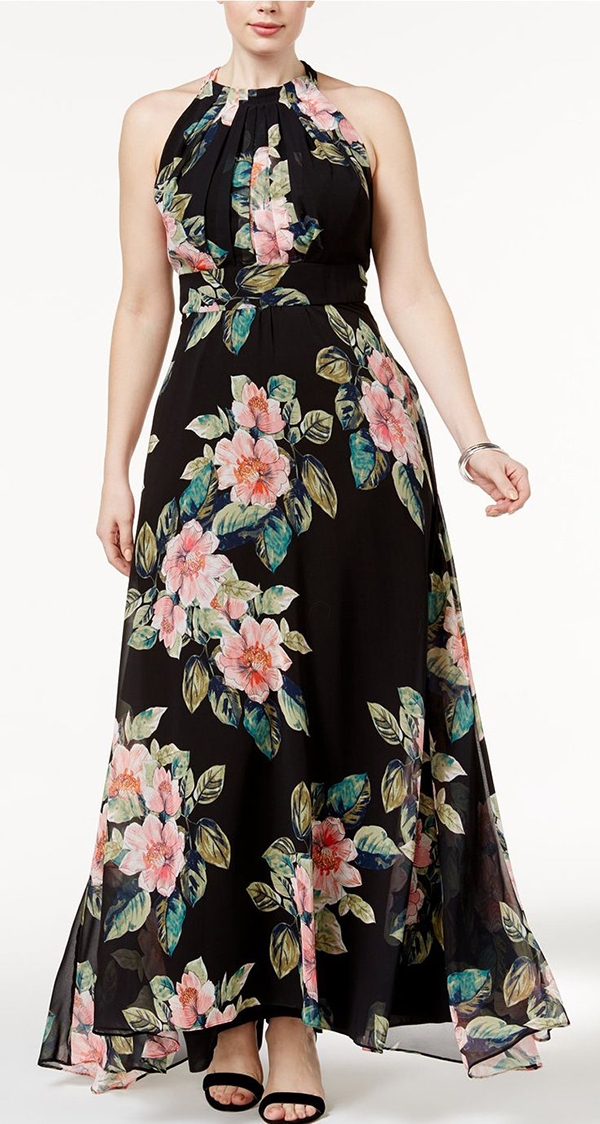 İri desenli uzun elbiseler