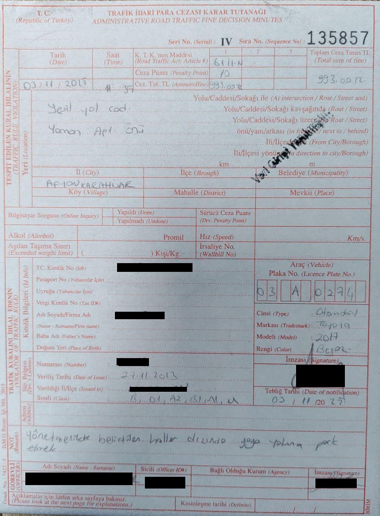 Müdür Erol, yaya geçidine polis aracı park eden personeline 993 lira para cezası yazdırdı. Erol, “Tüm personelimiz kanun uygulayıcısı olarak ilk önce kendileri trafik kuralları, işaret ve levhalarına uyacak. Personelimiz vatandaşlarımıza örnek olmaları konusunda duyarlı olacak” dedi.