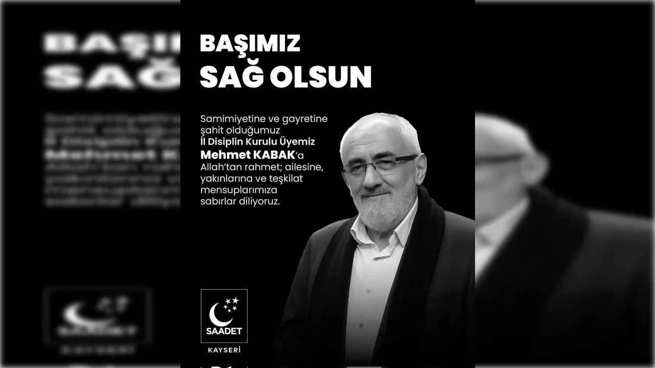 Saadet Partisi Kayseri İl Disiplin Kurulu Üyesi Mehmet Kabak hayatını kaybetti.