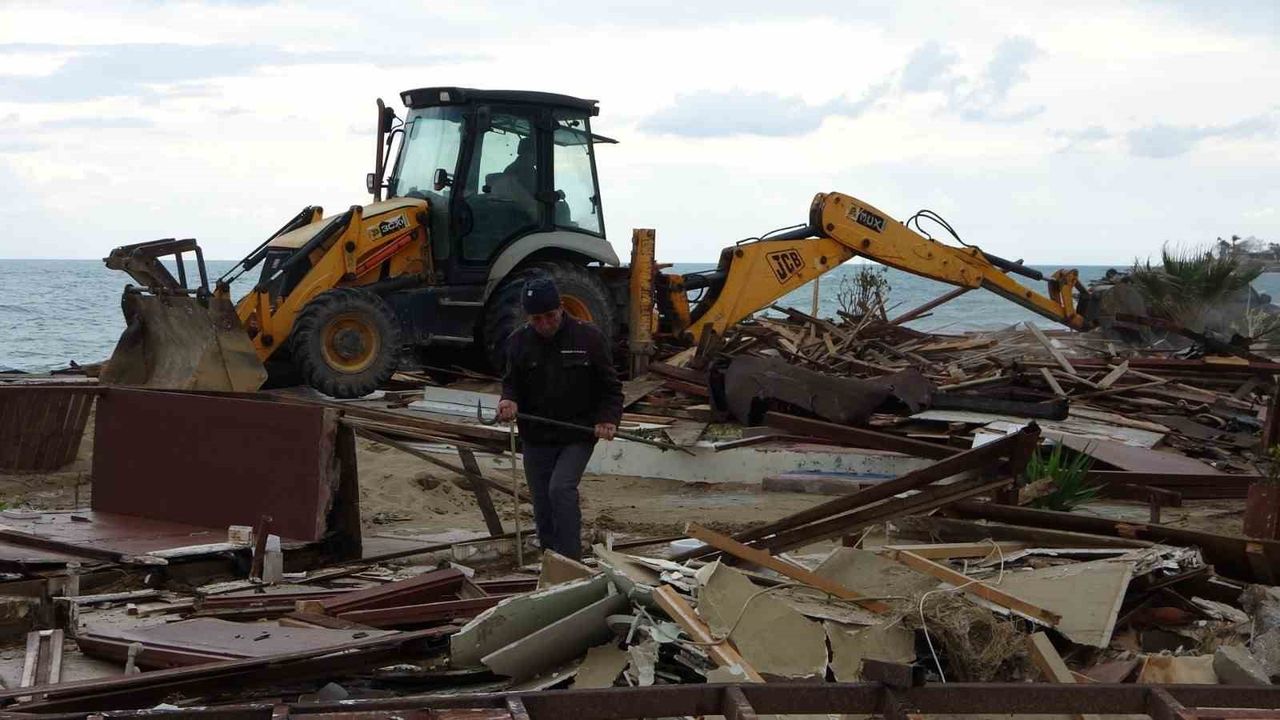 Antalya'nın Manavgat ilçesinde Side büyük plajda bulunan 15 günübirlik işletme Kültür ve Turizm Bakanlığı'nın yıkım kararı doğrultusunda işletme sahipleri tarafından yıkıldı.