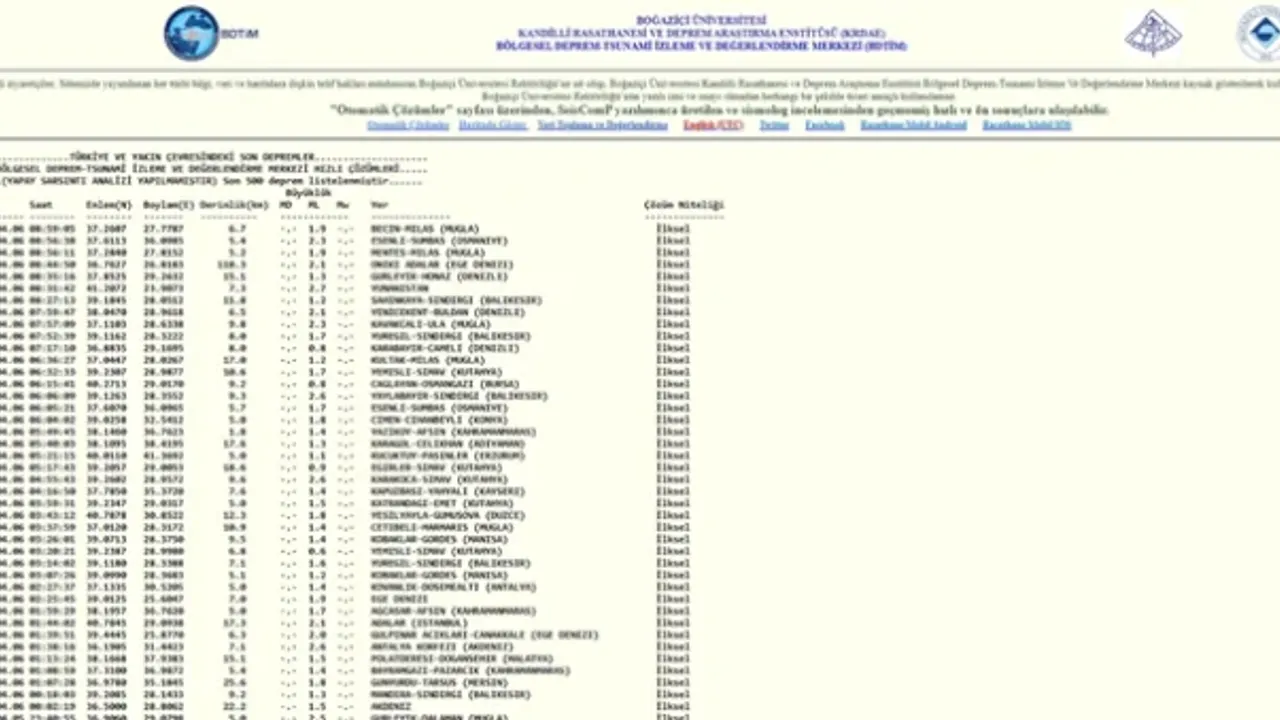 - Kandilli Rasathanesi: koeri.boun.edu.tr/scripts/sondepremler.asp