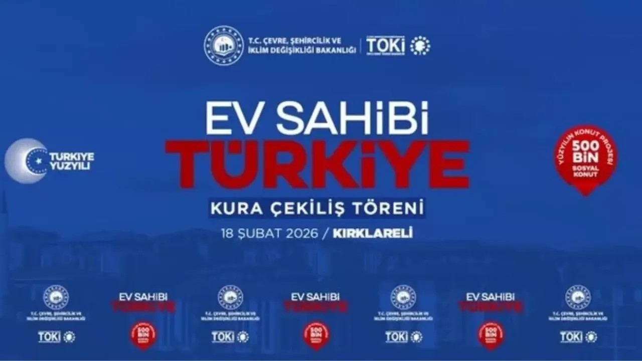 TOKİ Kırklareli kura çekimi bugün (18 Şubat 2026 Çarşamba) gerçekleşiyor – "Yüzyılın Konut Projesi" kapsamında Kırklareli'nde inşa edilecek toplam 2.255 sosyal konut (Merkez, Lüleburgaz, Babaeski, Vize vb. ilçeler dahil) için hak sahipliği belirleme kurası noter huzurunda yapılıyor.
